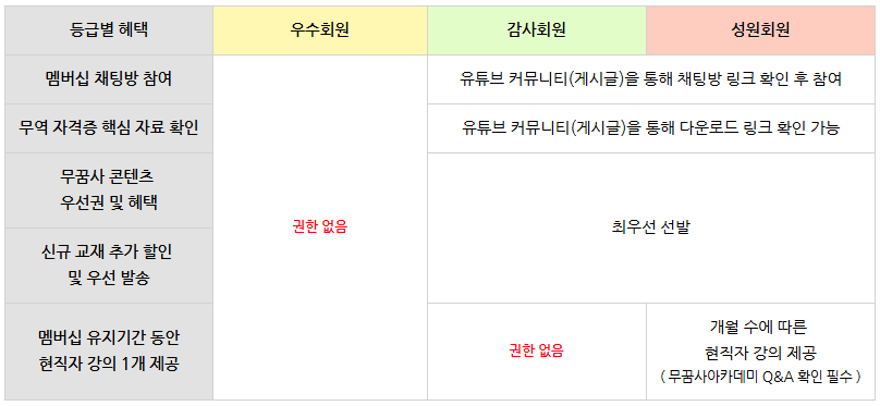- 무꿈사 교재 구매 인증 (기존 회원 기간 갱신 : 유튜브 멤버십 감사회원 이상)