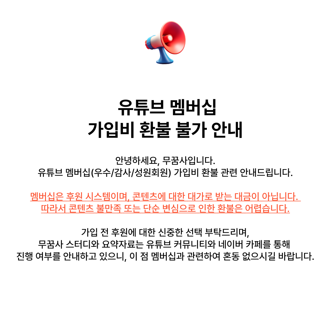 참고로 무꿈사 스터디 및 요약자료 제공은 유튜브 커뮤니티와 네이버 카페를 통해