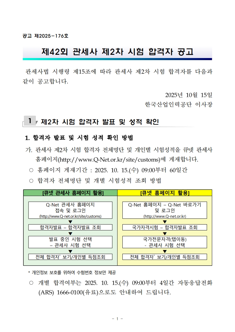 제42회 관세사 2차 시험 합격자 발표 및 합격 조회 방법 안내