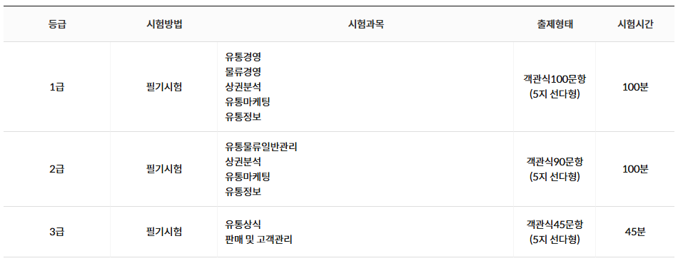 ✅ 3급 : 유통산업분야에서 2년이상 근무한 자로서 산업통상자원부가 지정한